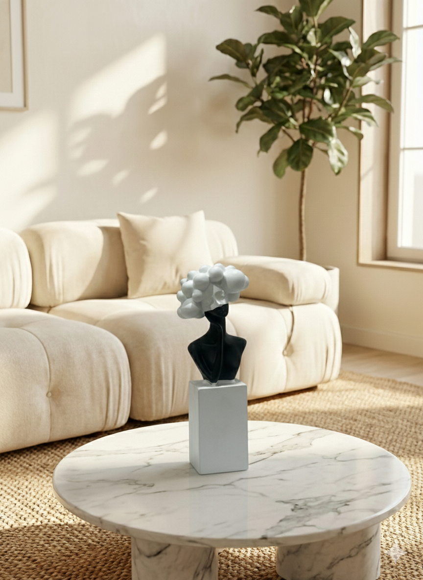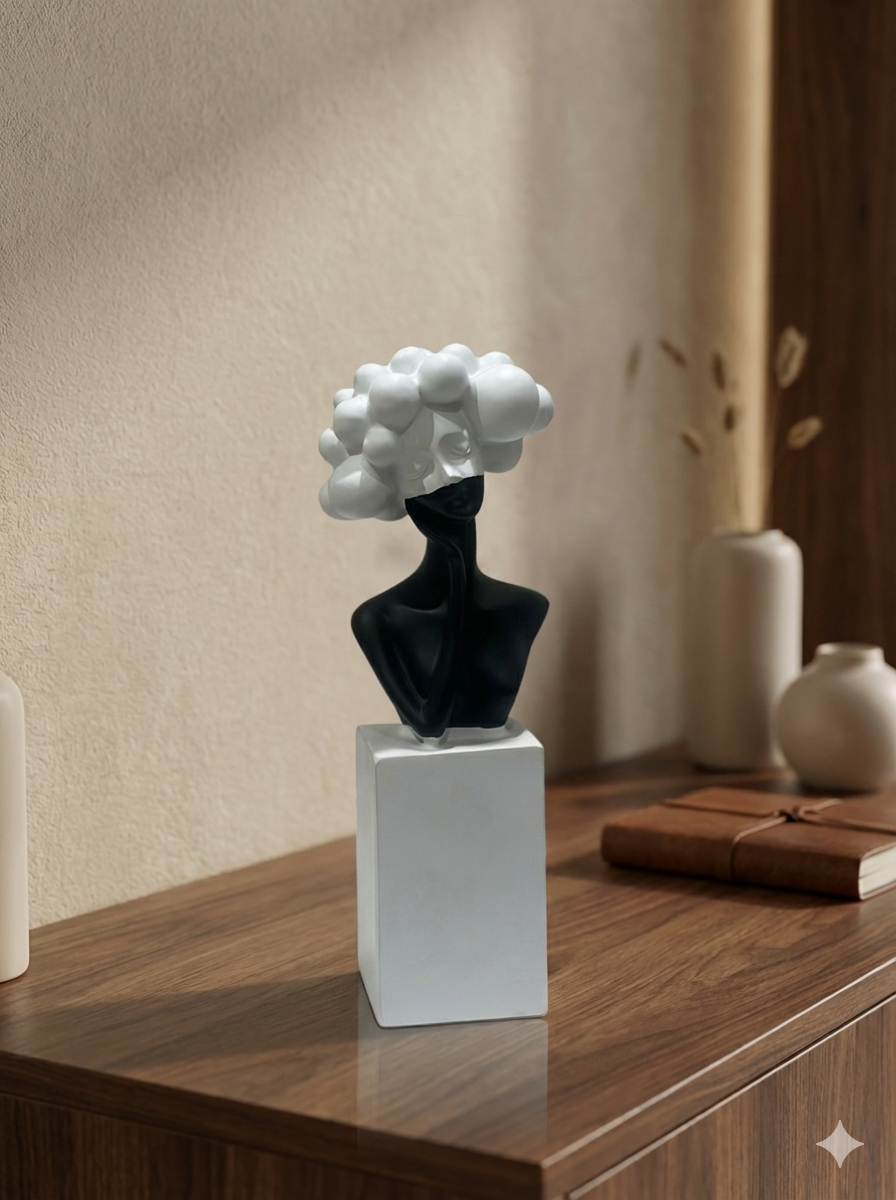 Abstract Cloud Head Bust Sculpture - Black & White Resin