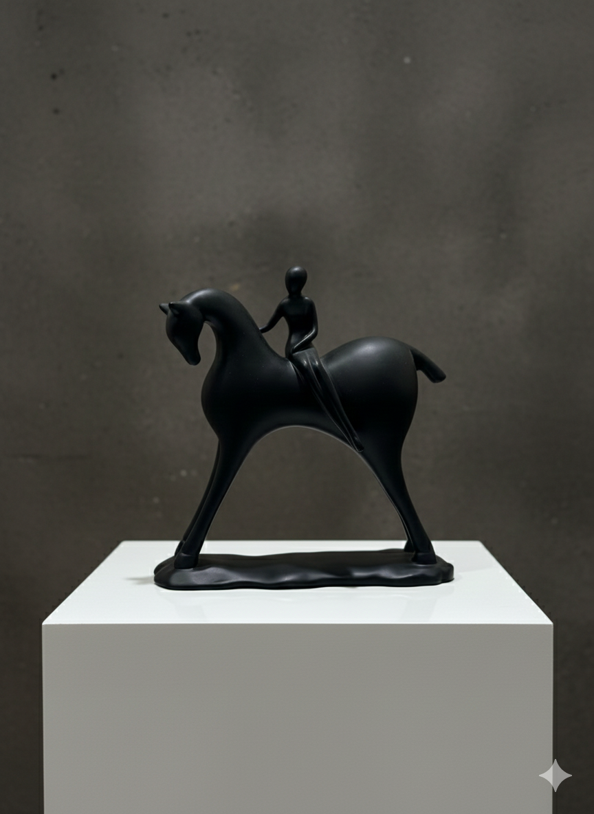 Minimalist Black Horse with Rider lady Sculpture