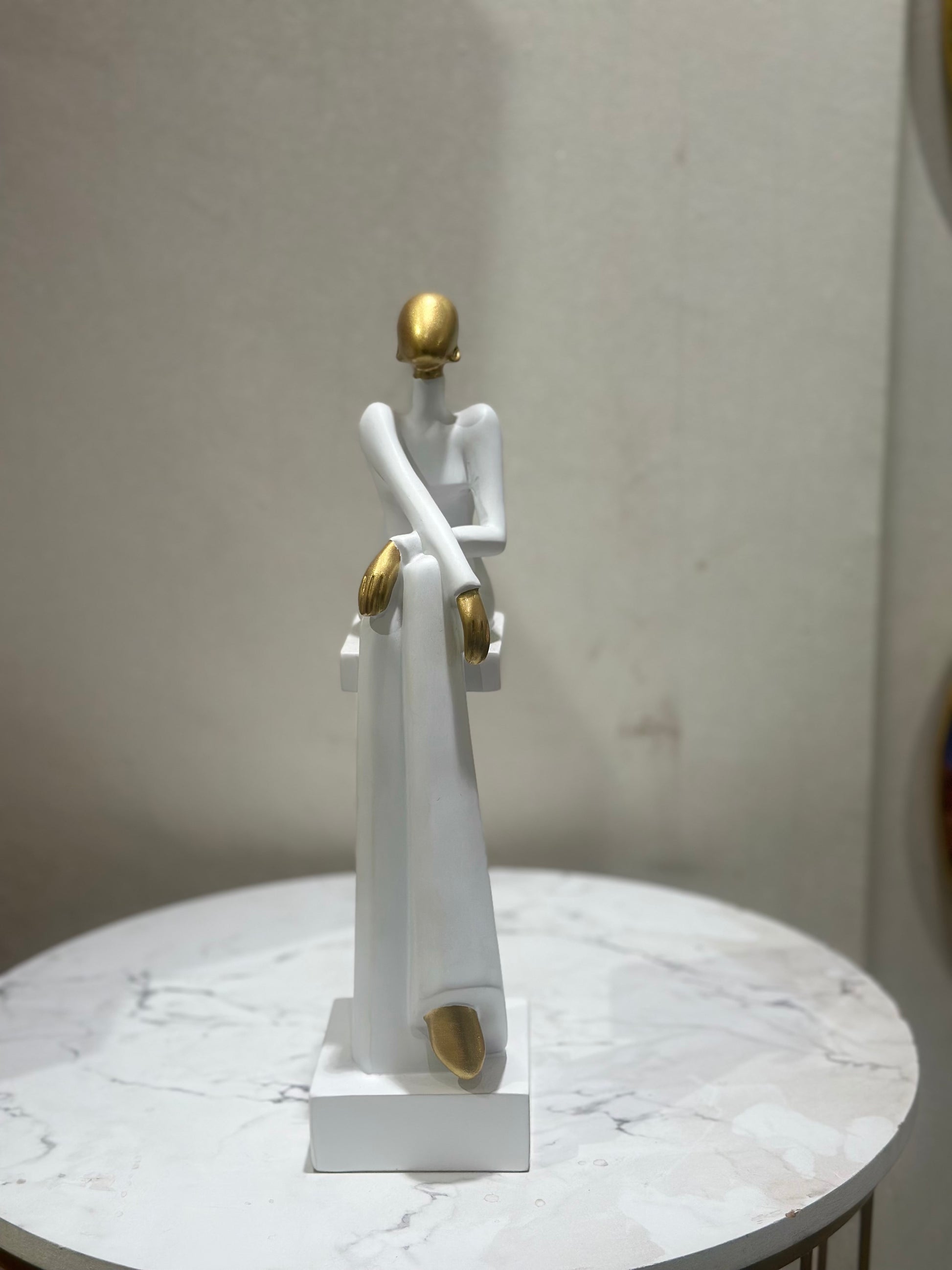 Modern Abstract Thinker Sculpture - White & Gold Resin Decor